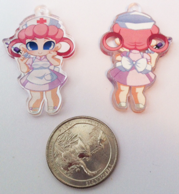 3mm thick clear acrylic double sided charms featuring Nurse Joy or Officer Jenny.