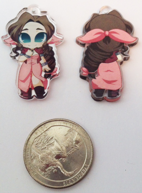 3mm thick clear acrylic double sided charms featuring Aerith.