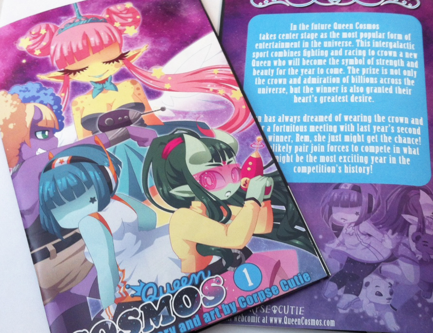 Issue one of Queen Cosmos, an original Corpse Cutie comic. 24 black and white pages long.